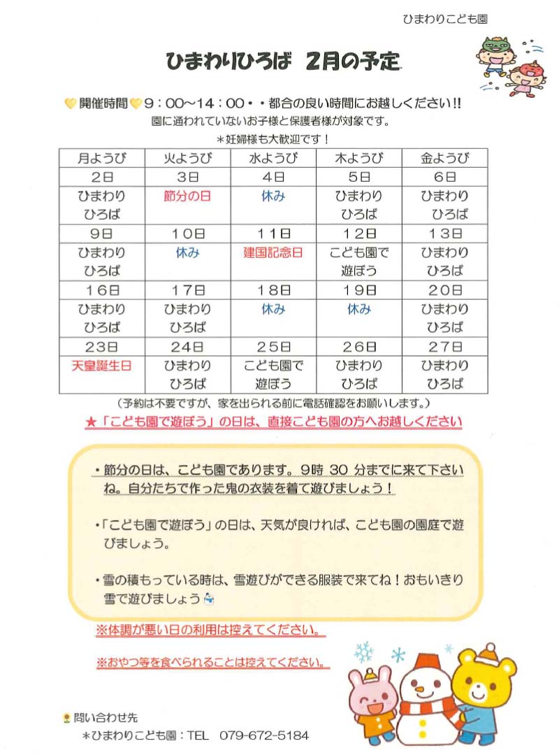 ひまわりひろば(地域子育て拠点支援事業)……無料