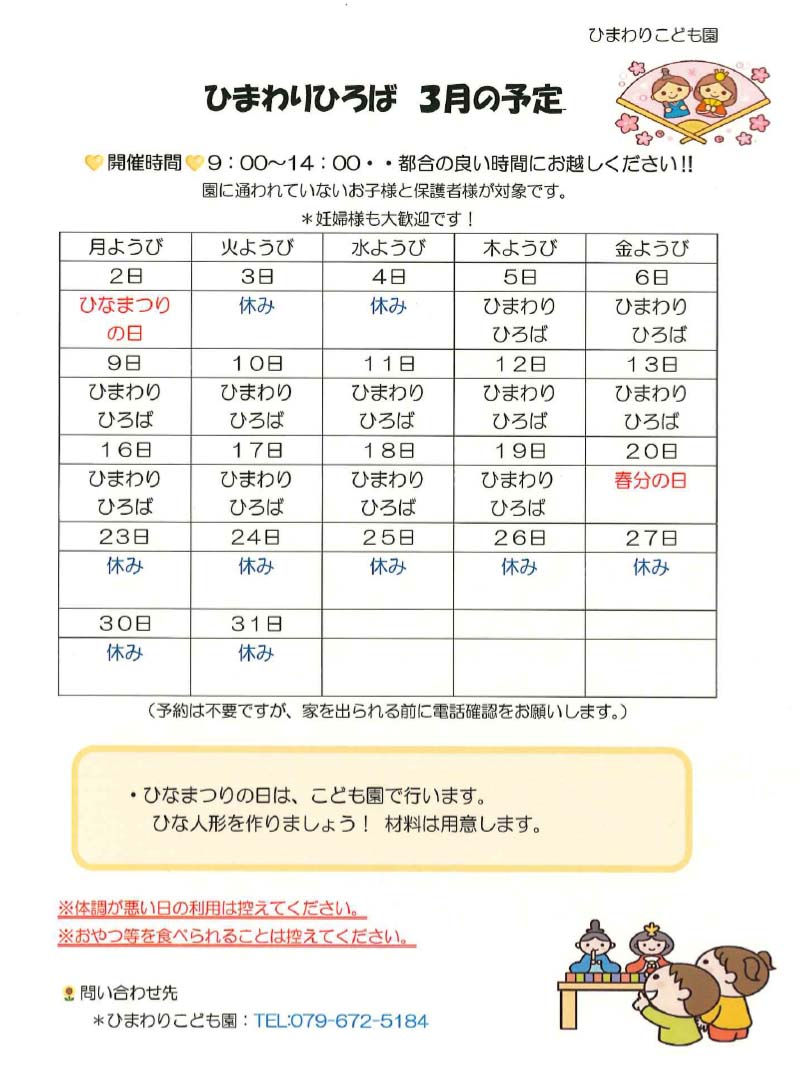 ひまわりひろば(地域子育て拠点支援事業)……無料